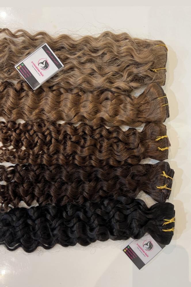 تميزي وتألقي باقتنائك منتجات EXTENTION HAIR لتكوني صاحبة حضور فاتن و جاذب للانتباه مع كثافة وطول شعرك ذو اللمعان والبريق الساطع. اذا كنتِ ذا اهتمام بكثافه وطول شعرك حيث يكون الشعر نصف جمال المرأة, هنا سوف تجدين الحل في دقائق مع خصلات EXTENTION HAIR الطبيعية ذي الجودة التي لا تضاهى حيث كان هدفنا هو توفير الشعر الطبيعي ذي جودة عالية و بأسعار تنافسية يمكن للجميع اقتنائها.تتميز اكستنشن الكلبسات المطور 8 قطع كيرلي كثافه 200 جرام بخفتها على الرأس و بسهولة التركيب والخلع مما يجعلها الأكثر مبيعا لدينا. بإمكانك لبس الخصلات وتوزيعها على الراس في غضون دقائق معدودة حيث سوف يندمج ويتجانس مع شعرك ولن يستطيع أي شخص ملاحظه ذلك. يتوفر بأطوال والوان مختلفة.بأمكانك صبغ الشعر وغسله و استشواره ومعاملته معامله شعرك بأتباع التعليمات.الشعر المتوفر لدينا اكسبنا ثقه ممثلات ومودلز (المصداقية دائما شعارنا)